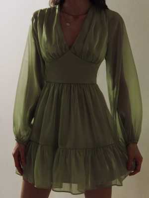 Платье из натурального шелка и фатина. Цвет - темно зеленый. Размер - 40.