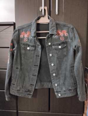 Джинсовая куртка женская, с вышитыми цветами. Цвет в жизни темнее, чем на фото