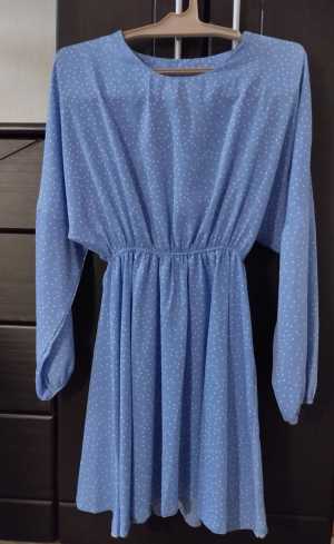 Женское платье в горошек, длина платья выше колена.