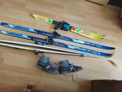 Детские лыжи три пары , одни с обувью 35размера и две пары лыжкороткие без отталкивающих палок ! Всё б/у .