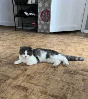 Найдена кошечка, примерно 6 месяцев. Не чистокровная шотландская скорее всего! Кушает всё, ласковая, игривая.